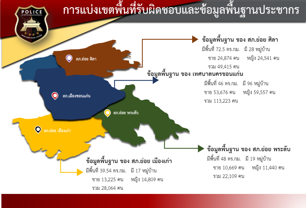 พื้นที่ 4 ตำบล ได้แก่ ตำบลในเมือง ตำบลเมืองเก่า ตำบลพระลับ และ ตำบลศิลา